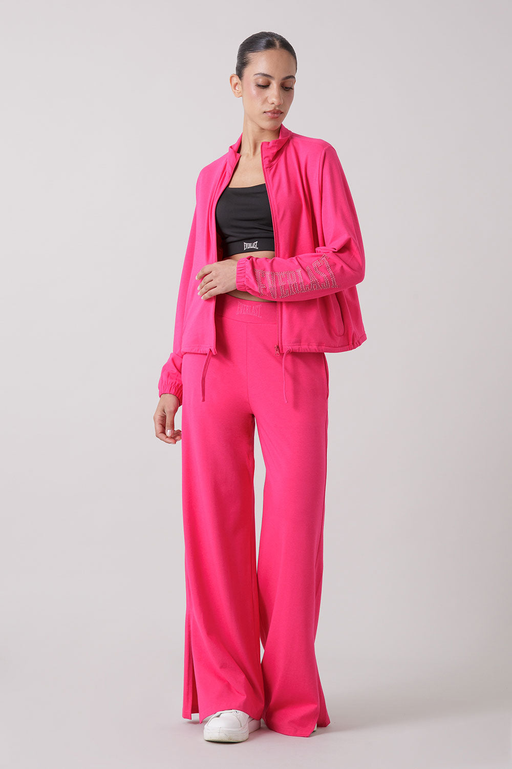 The Everlast logo, printed tone-on-tone on the sleeve and embellished with pearls, adds a touch of elegance and unique style to this garment.