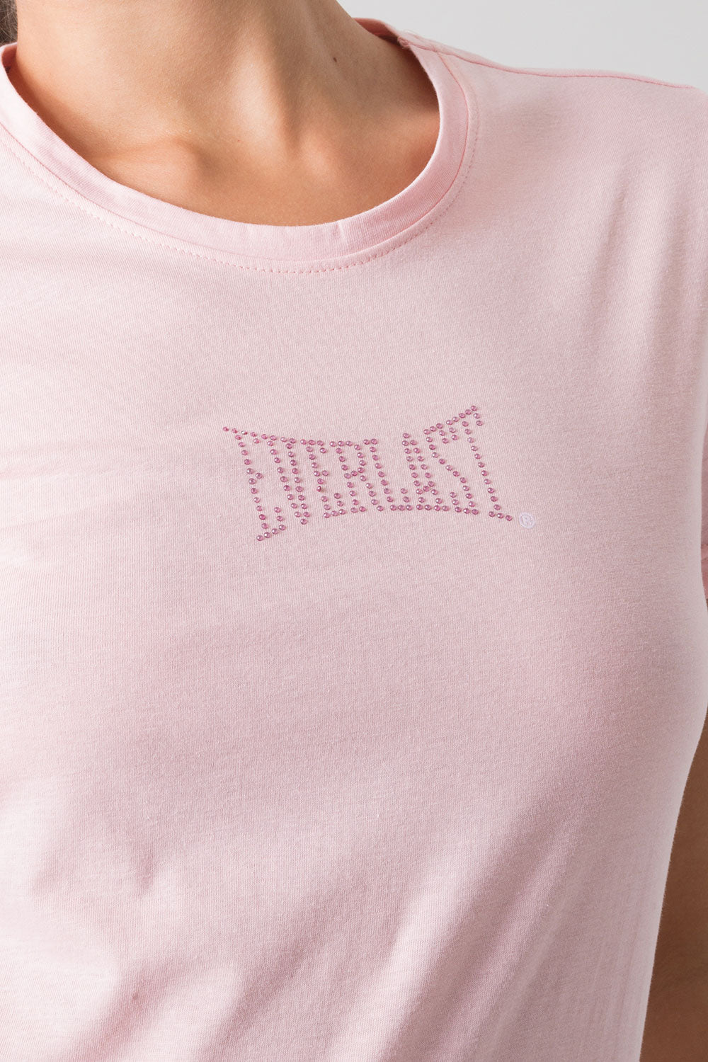 Everlast T-shirt in soft cotton jersey with short sleeves. The minimalist design with a logo decorated with tone-on-tone rhinestones gives the garment a touch of elegance and femininity. Ideal for a casual-chic look.