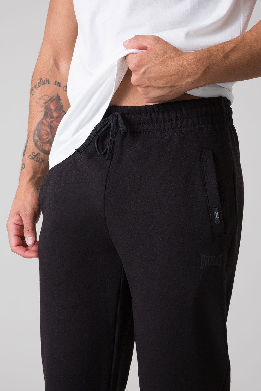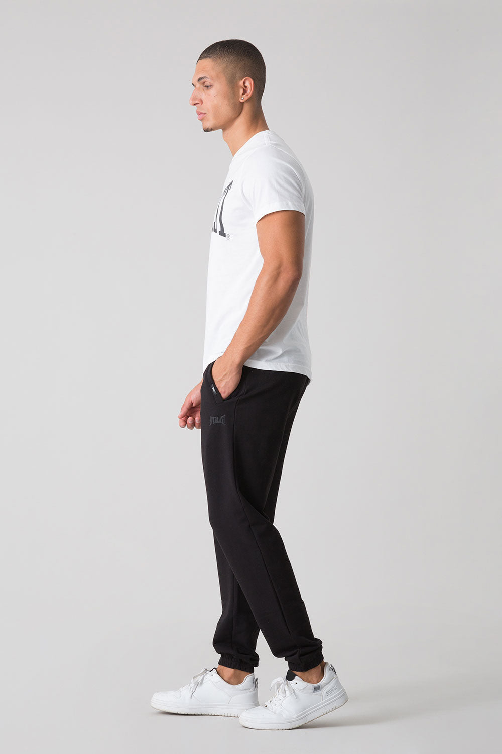 Discover the comfort and unique style of these pants in soft brushed fleece by Everlast. With a regular fit, this garment features practical welt pockets and elasticated hems for a casual yet refined look. The comfortable drawstring waist allows you to adjust the fit to your liking. The tone-on-tone printed Everlast logo adds a touch of elegance with a leather-effect finish.