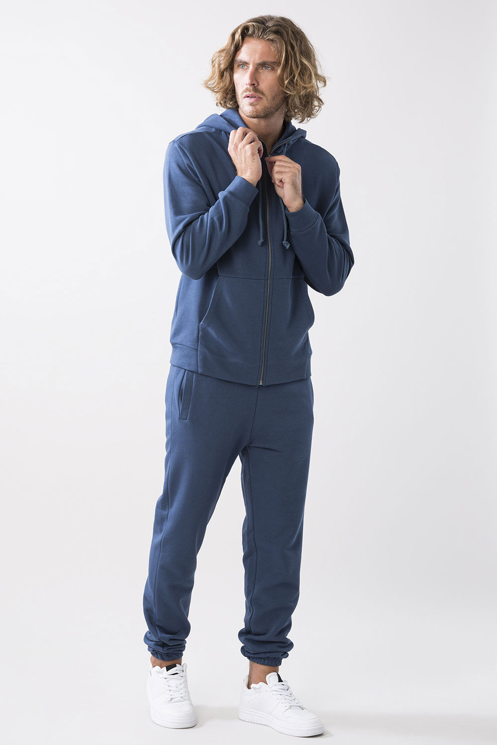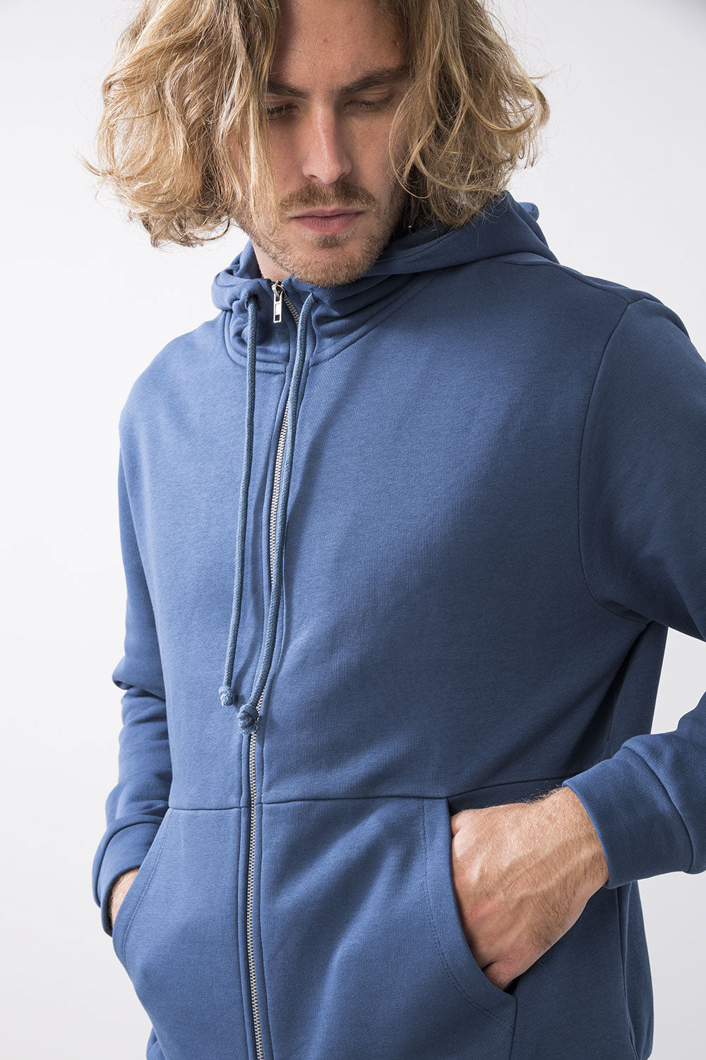 Cotton fleece hooded jacket with a simple design and a straight fit. Ideal for a sporty and casual look, this jacket will ensure comfort and style on any occasion. Complete it with the matching trousers for a perfect coordinated outfit.
