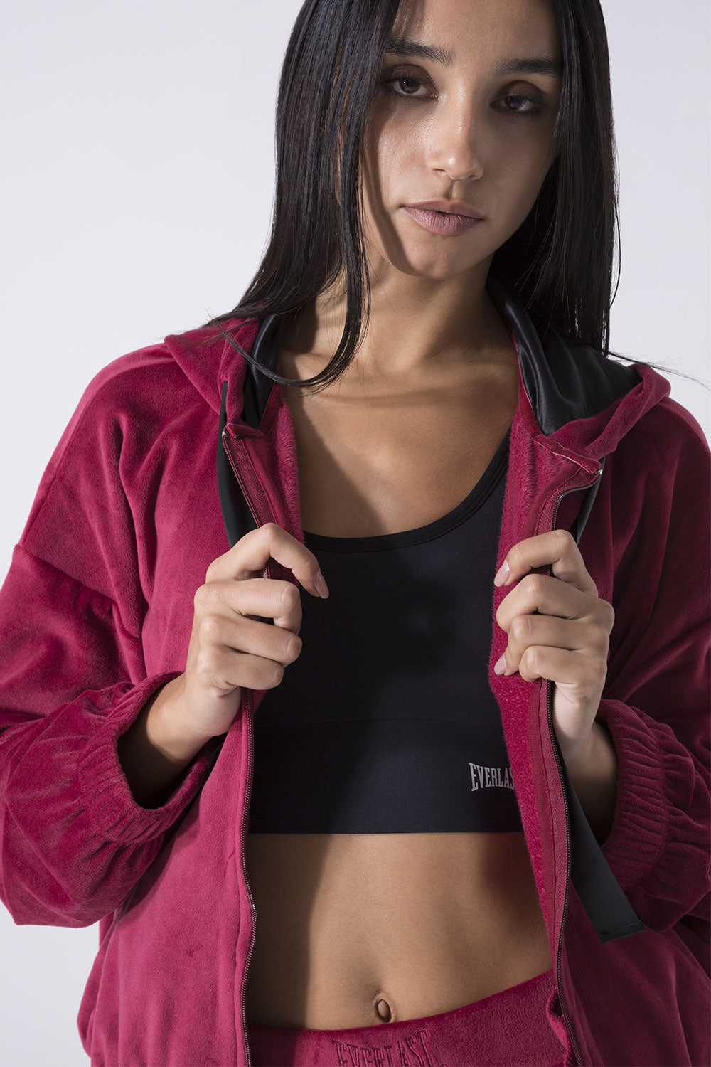 Full-zip chenille hoodie with a soft fit. The elastic hem creates a gathered effect that adds volume. The satin details of the hood lining and drawstring complete the look with style. The Everlast logo is embroidered tone on tone at the bottom.