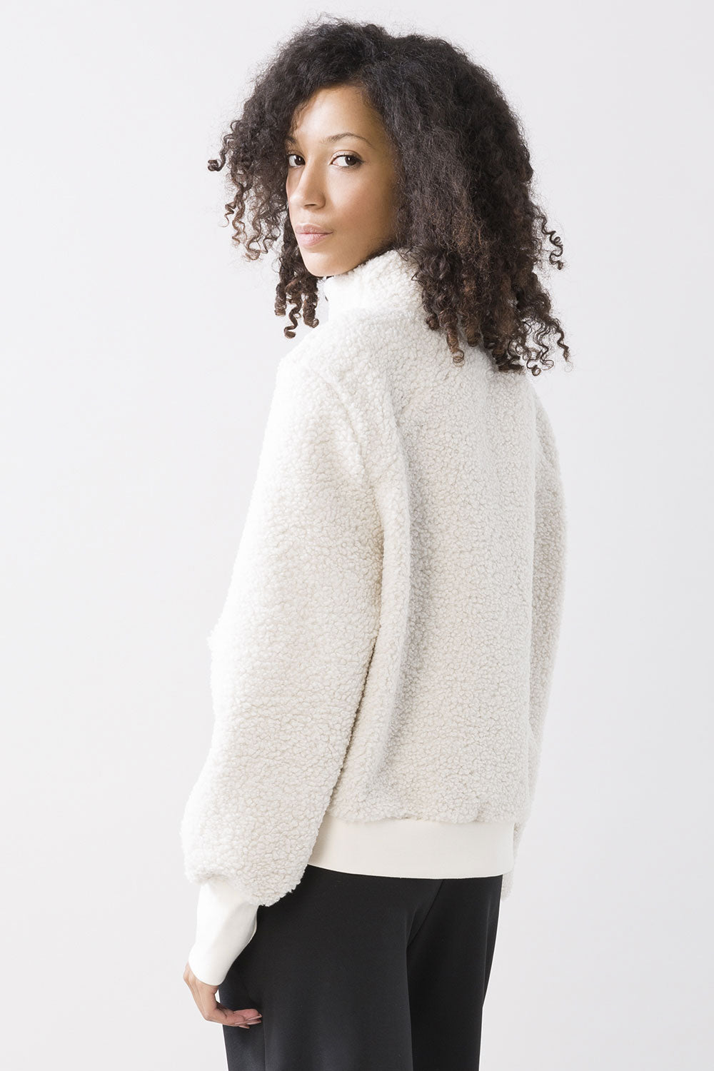 High-neck sherpa jacket with a regular fit. The fit and teddy effect of this garment ensure maximum comfort combined with a touch of glamour. Perfect for completing your winter look in style. Made with high-quality materials, it will be your best ally against the cold. Don't give up comfort and fashion with this sherpa jacket with an exclusive design. Buy it now and add it to your wardrobe!